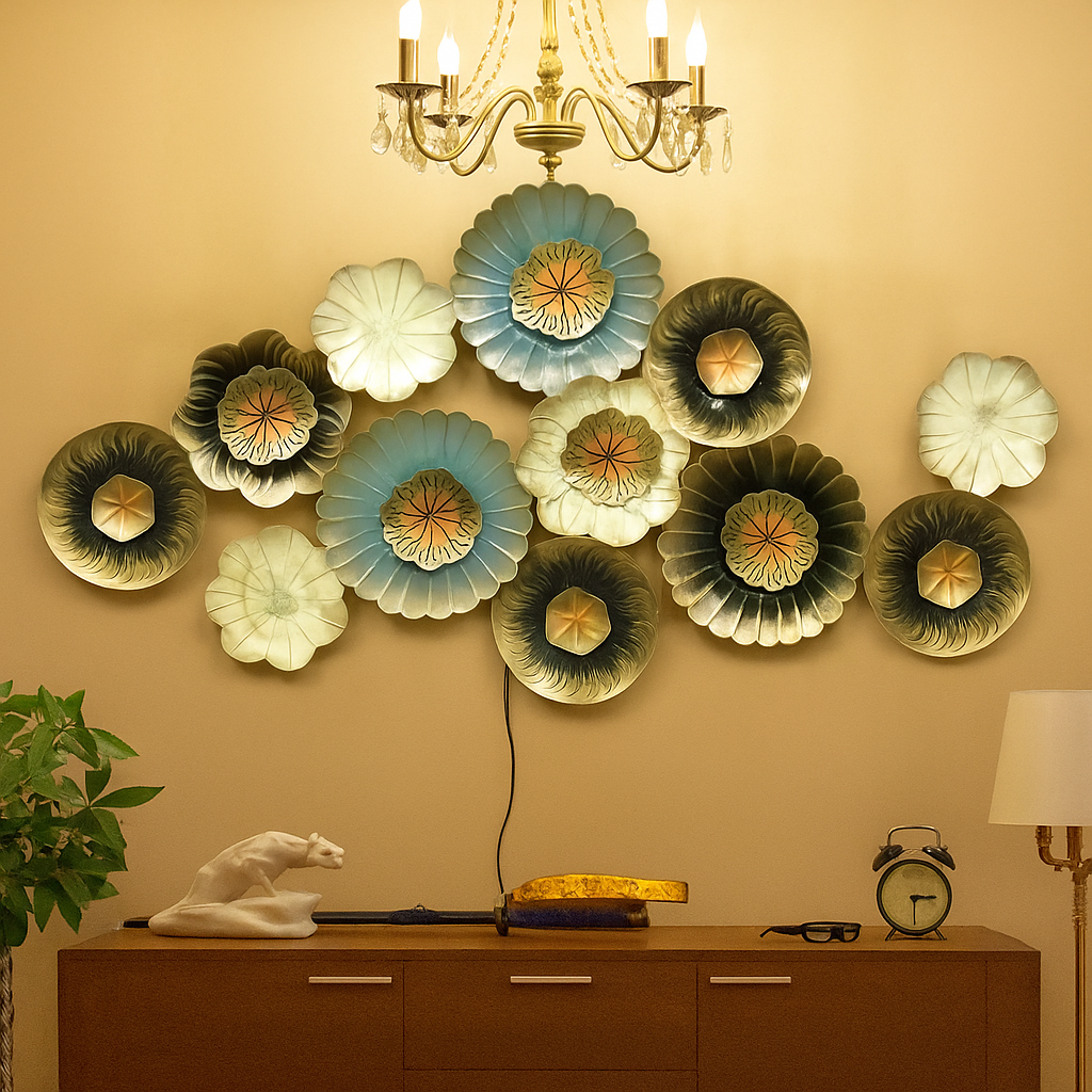 Perfect for living rooms, bedrooms, hallways, dining areas, offices, and hotels, this designer floral wall hanging adds depth, sophistication, and charm to your walls. Its textured metallic finish and unique layered design make it an eye-catching centerpiece in modern and contemporary homes.